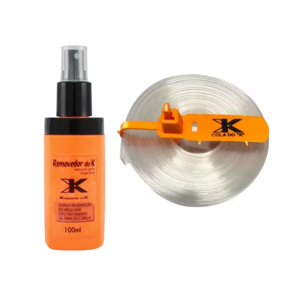 Esse kit contém 1 unidade do removedor K (100 ML) + 1 unidade de queratina em fita (3 metros) da marca K original.