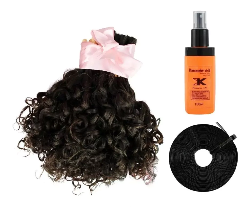 - O kit contém 100 gramas de cabelo, uma queratina K e um removedor K.
